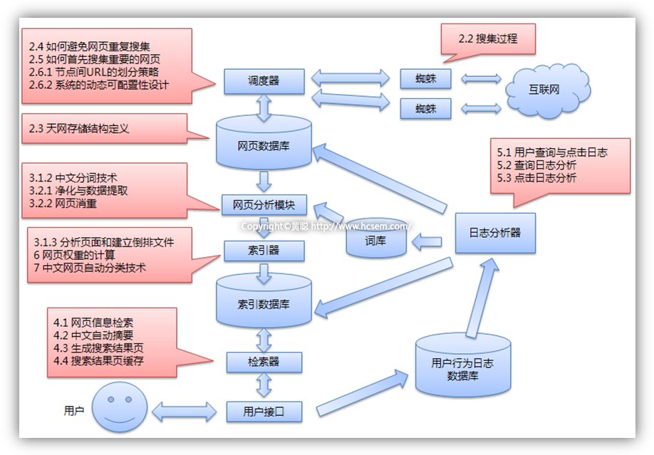 鍦ㄤ簰鑱旂綉涓紝URL鏄瘡涓〉闈㈢殑鍏ュ彛鍦板潃錛屸濊湗铔涚▼搴忊濋氳繃榪欎簺URL鍒楄〃鎶撳彇鍒伴〉闈㈢殑錛屸滆湗铔涒濅笉鏂殑浠庤繖浜涢〉闈腑鑾峰彇URL璧勬簮鍙?qiáng)瀛樺偍椤甸潰锛岒q跺姞鍏RL鍒楄〃錛屽姝や笉鏂殑寰幆錛屾悳绱㈠紩鎿庡氨鍙互浠庝簰鑱旂綉涓幏鍙栧埌瓚沖鐨勯〉闈€傚綋鐢ㄦ埛鍦ㄦ悳绱㈠紩鎿庝腑媯(gè)绱俊鎭椂錛屾悳绱㈠紩鎿庨鍏堟淳鍑衡滆湗铔涒濅粠绱㈠紩鍖哄嚭鍙戯紝鍦ㄤ簰鑱旂綉涓姄鍙栫綉欏碉紝鐒跺悗鏀懼埌涓存椂搴撲腑錛屽湪涓存椂搴撲腑緗戠珯鑻ヨ繕鏈夊叾浠栫殑閾炬帴錛屸滆湗铔涒濅細(xì)欏虹潃閾炬帴榪涘叆涓嬩竴涓〉闈紝鍐嶆妸榪欎釜欏甸潰鎶撳彇鍒頒復(fù)鏃跺簱涓紝榪欐牱涓嶆柇寰幆銆備絾涓存椂搴撲腑鐨勭綉欏典俊鎭笉絎﹀悎瑙勫垯錛屽氨琚竻闄ゆ帀錛涜嫢絎﹀悎瑙勫垯錛屽氨鏀懼叆绱㈠紩鍖恒傚啀閫氳繃鍒嗙被銆佹暣鐞嗐佹帓搴忕瓑榪囩▼錛屽皢絎﹀悎瑙勫垯鐨勭綉欏墊斁鍒頒富绱㈠紩鍖猴紝涔熷氨鏄敤鎴風(fēng)洿鎺ョ湅鍒版煡璇㈢殑緇撴灉銆?BR>