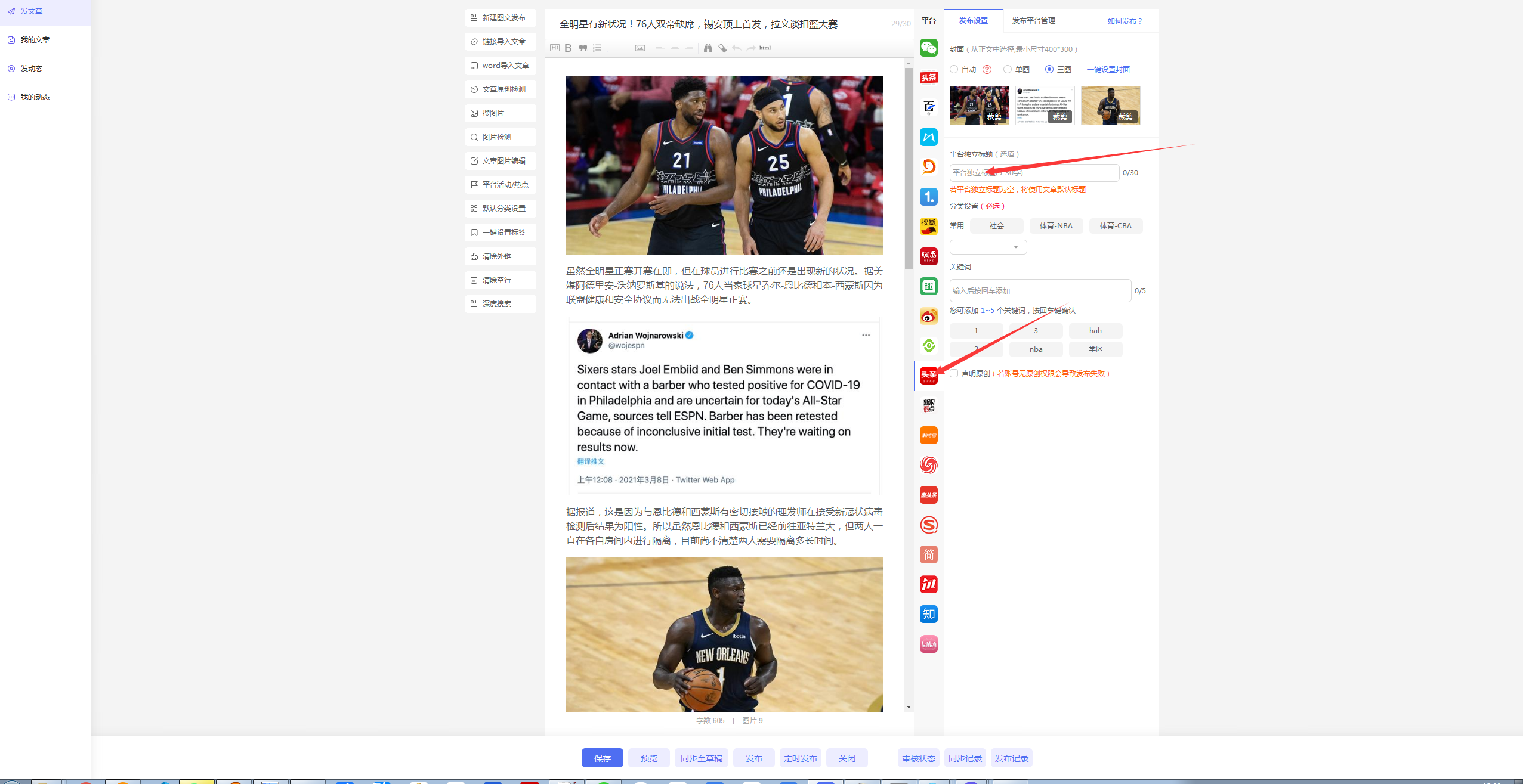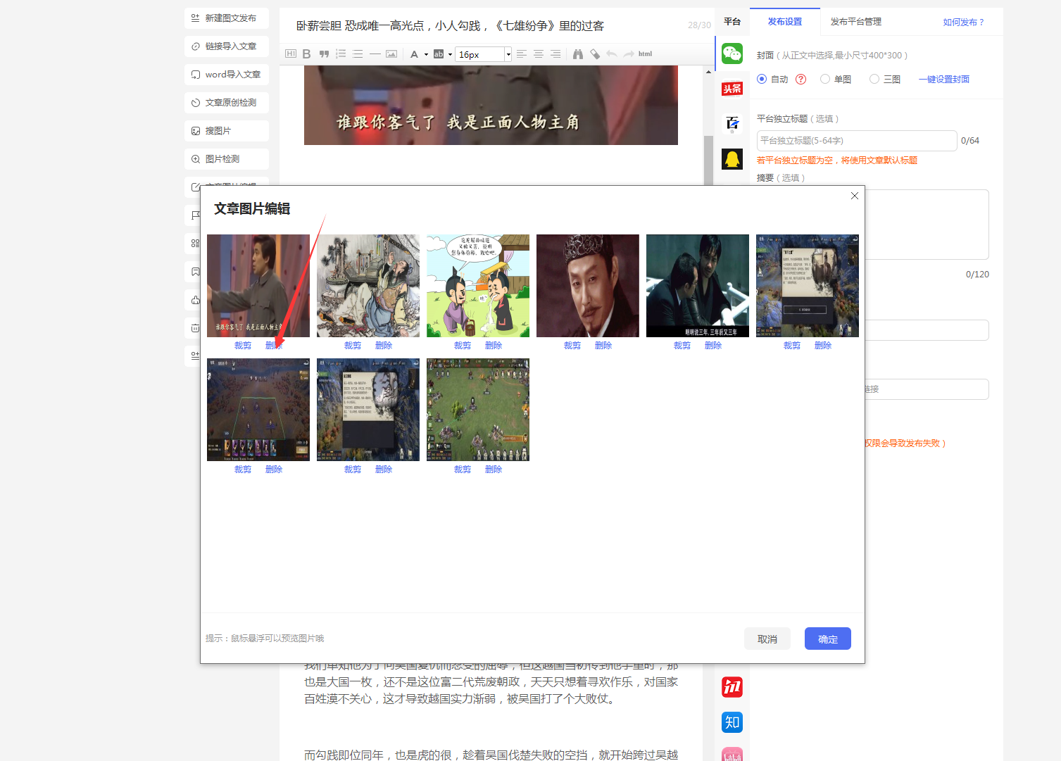 閬囧埌鏂囩珷鍥劇墖涓婁紶澶辮觸錛屽彲浠ラ氳繃鏂囩珷鍥劇墖緙栬緫鍔熻兘灝嗗搴斿浘鐗囧垹闄ゅ悗鍦ㄩ噸鏂頒笂浼犮備富瑕佹槸姣忎釜騫沖彴瀵瑰浘鐗囪姹傛湁緇嗗井宸埆錛屽鑷撮儴鍒嗗鉤鍙頒笉鑳芥垚鍔熶笂浼犮?