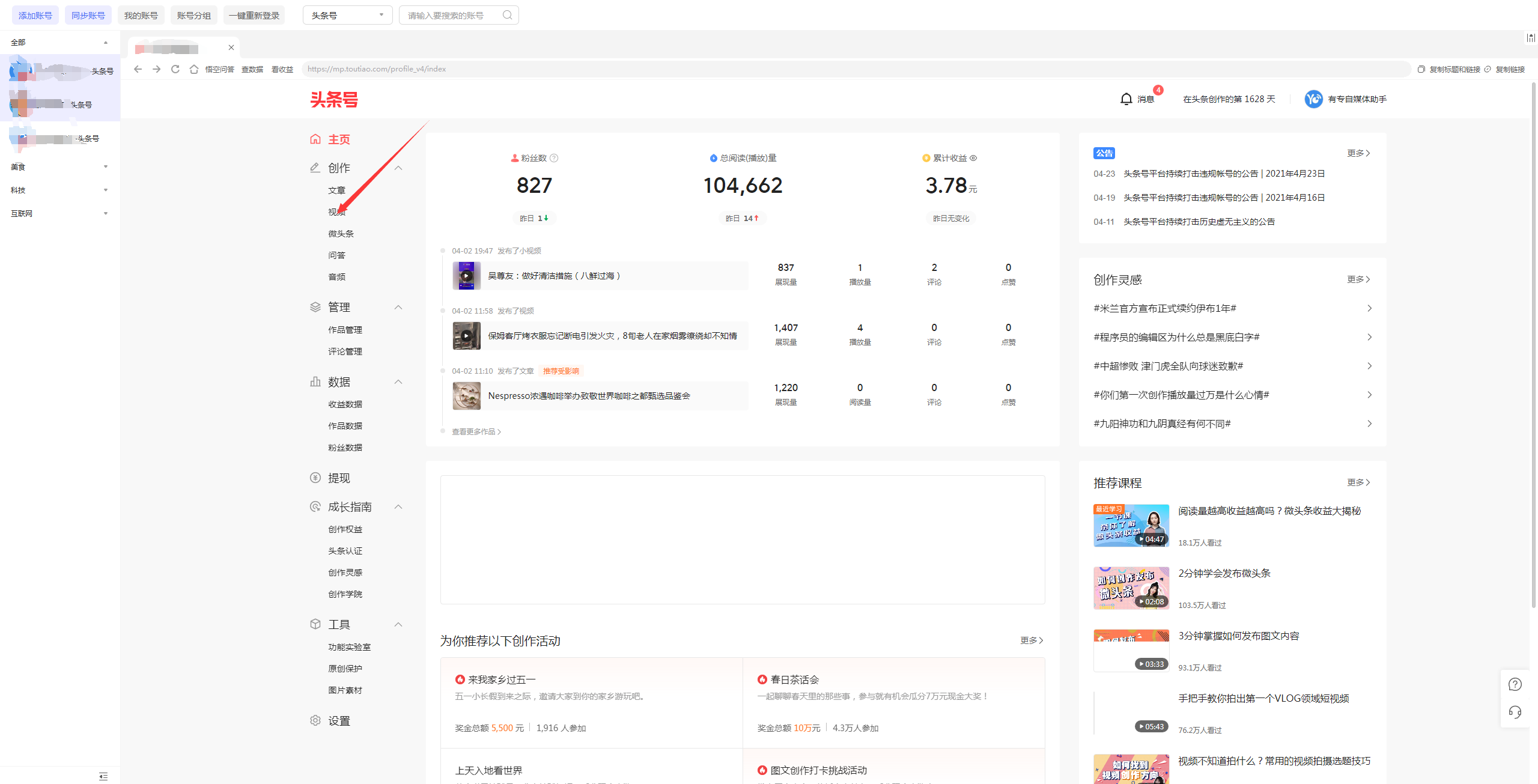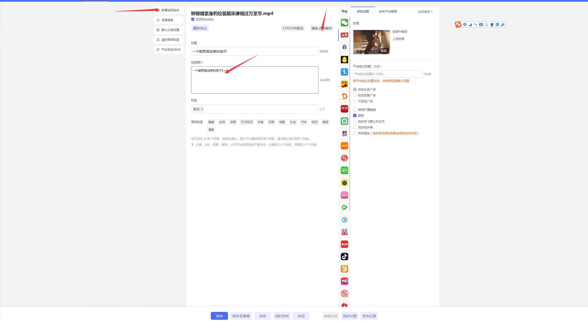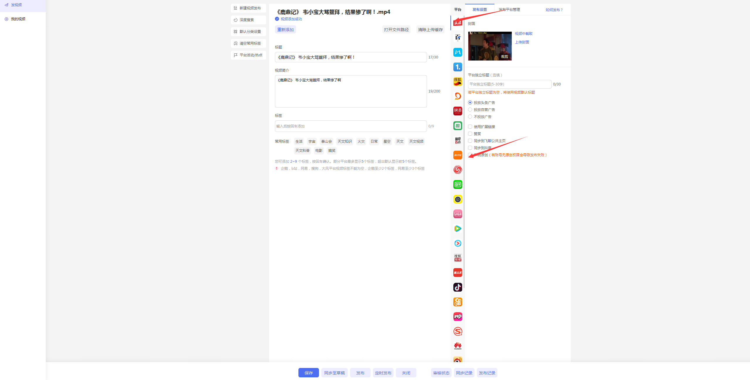 閬囧埌璇ラ棶棰樺彲浠ラ氳繃璐﹀彿妯″潡榪涘叆璇ュご鏉″彿瀵瑰簲鐨勭綉欏電錛岀劧鍚庣偣鍑誨彂甯冭棰戣繘鍏ュ彂甯冭棰戦〉闈?