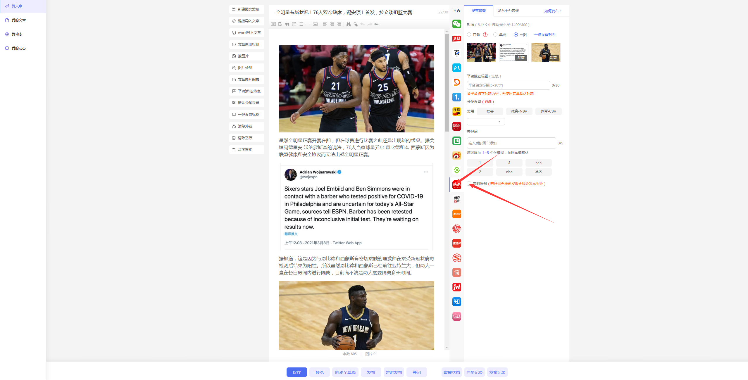 鍦ㄥ彂甯冩枃绔犲墠錛屽彲浠ラ氳繃鍥劇墖媯嫻嬪姛鑳斤紝媯嫻嬫槸鍚︽湁寮傚父鍥劇墖錛屼互姝ゆ彁楂樻枃绔犲彂甯冩垚鍔熺巼銆?