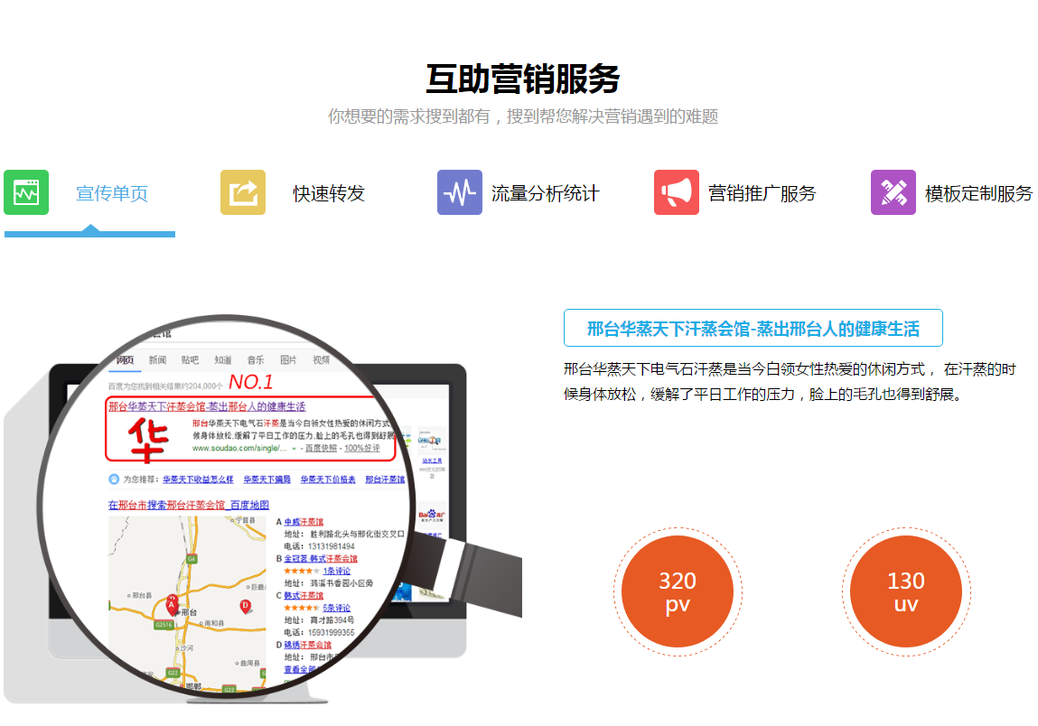 “搜到網”專注中小企業自營銷服務。是基于H5營銷頁制作、數據創建、持續傳播為理念的自營銷平臺。搜到公司堅持讓每一次傳播都有價值、并以用戶為中心,以產品為核心,幫助企業與客戶建立長期聯系。