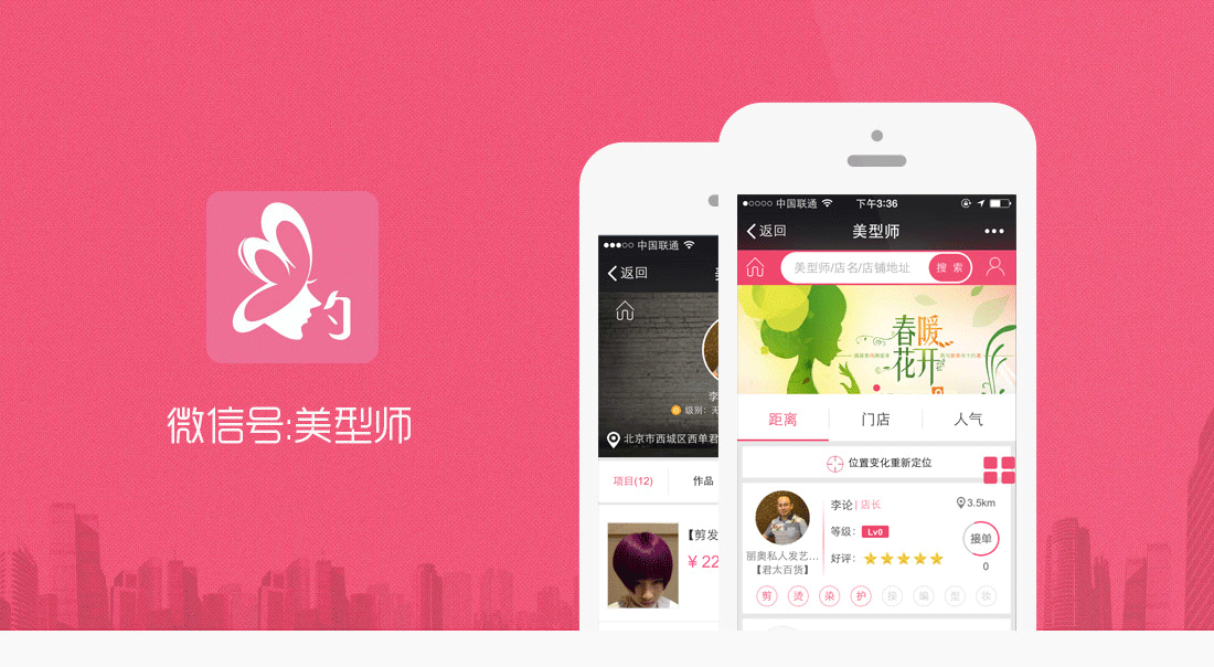 說明:微信:在線預約美型師、支付、定位周邊美發店