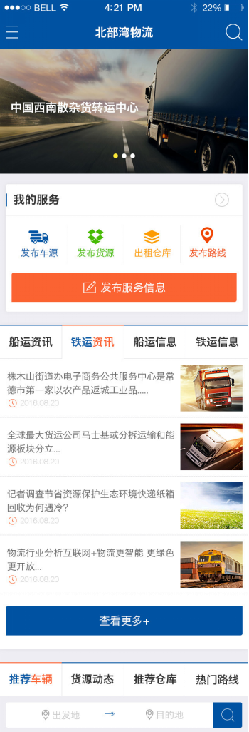物流公共信息平臺立足防城港、面向北部灣、輻射全國、鏈接東盟各國,是面向貨主、貨代、船代、運輸公司及個人司機等物流主體的信息交換平臺,為您提供Z新Z全的貨源、車源、運線、倉儲、船運、鐵運、物流配套服務等信息的發布與查詢以及在線交易。