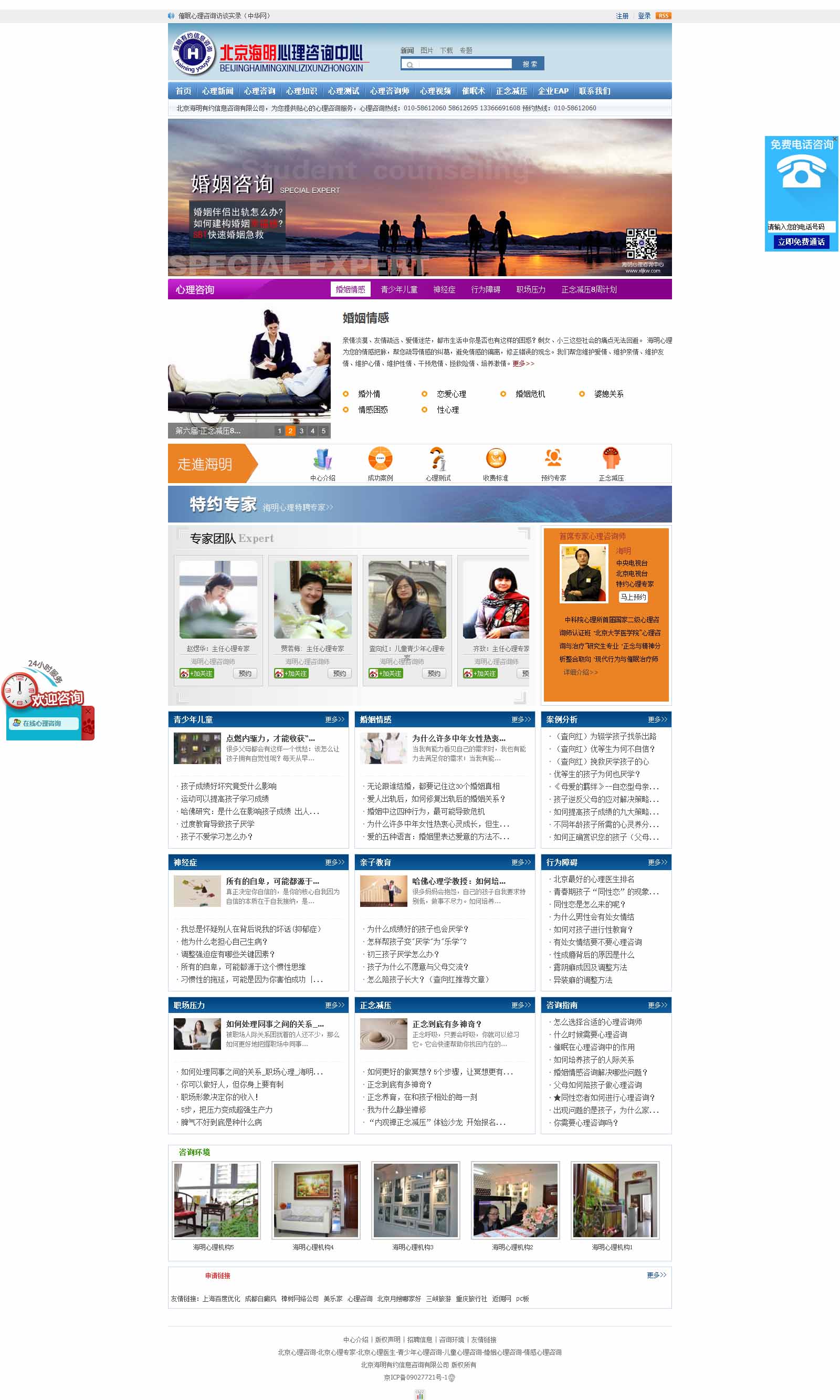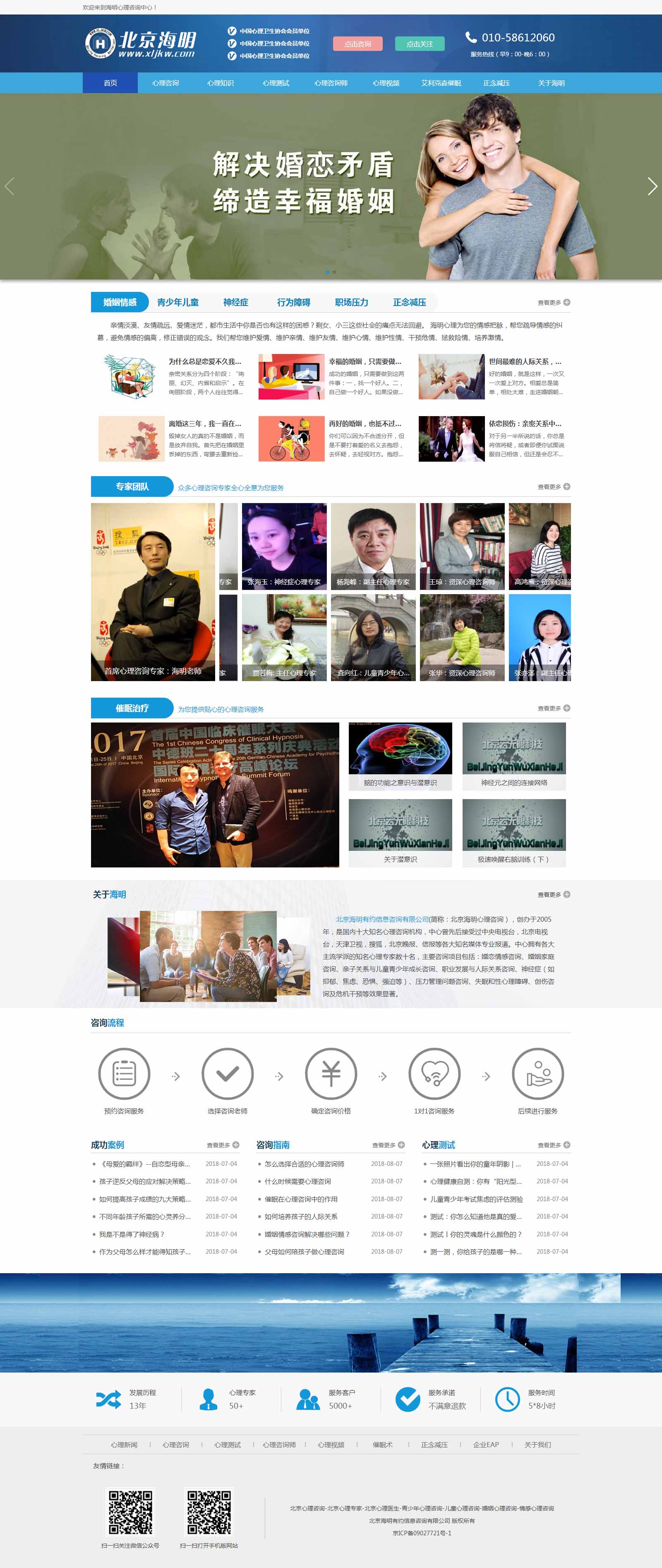北京海明有約信息咨詢有限公司,創辦于2005年,是國內十大知名心理咨詢機構, 擁有各大主流學派的知名心理專家數十名,主要咨詢項目包括:婚戀情感咨詢、婚姻家庭咨詢、親子關 系與兒童青少年成長咨詢、職業發展與人際關系咨詢、神經癥(如抑郁、焦慮、恐懼、強迫等)、壓力管 理問題咨詢、失眠和性心理障礙、創傷咨詢及危機干預等效果顯著。主要咨詢方式:一對一的面對面咨詢 ,遠程網絡音頻視頻咨詢,電話咨詢等方式。