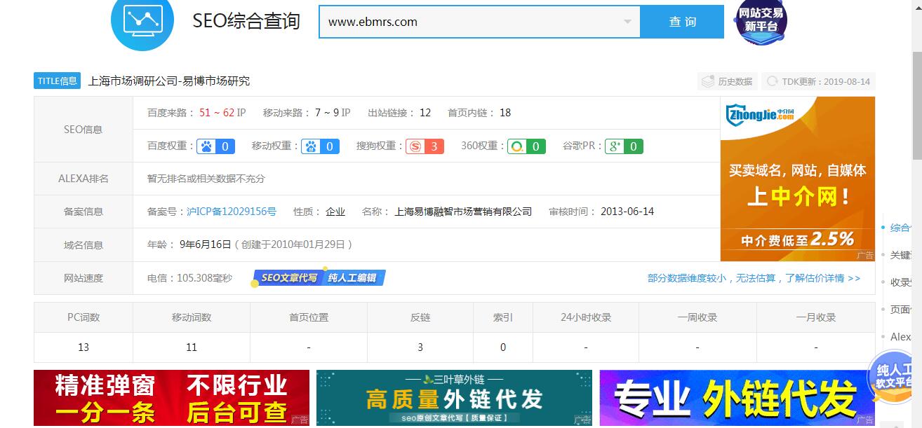 描述:易博市場研究是一家專業提供全方位市場調研咨詢的公司,主要有消費者洞察研究、滿意度研究、神秘顧客研究等服務,為客戶提供保障業務增長的全方位專業的市場研究和咨詢服務。