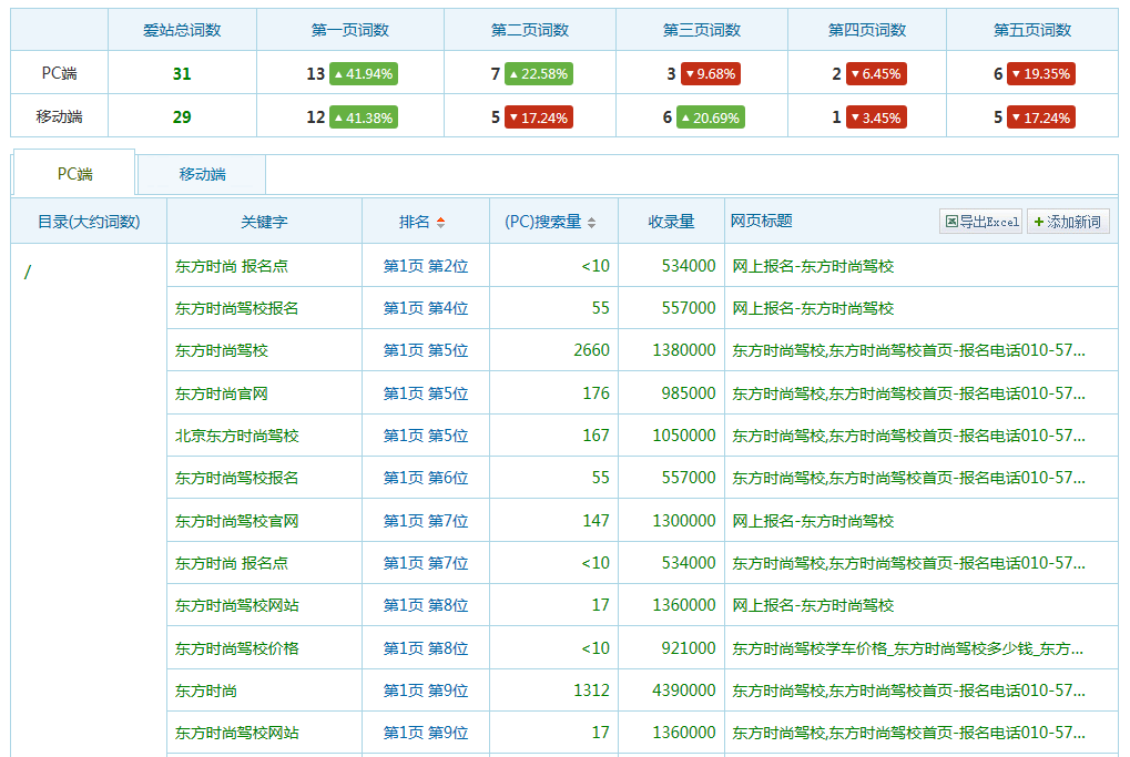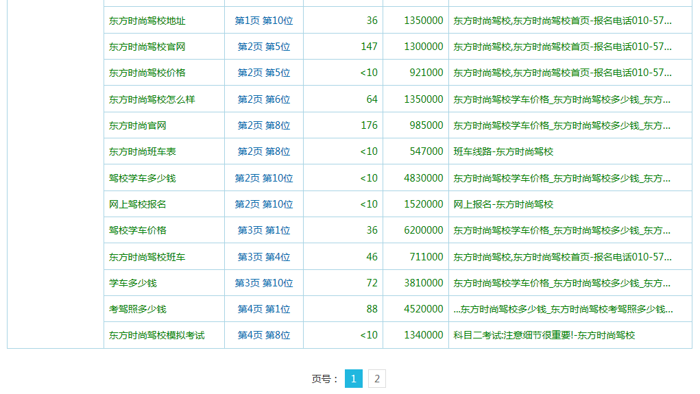 首頁 SEO案例 東方時尚駕校優化
