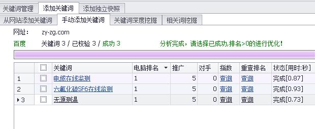 現(xiàn)在目標(biāo)關(guān)鍵詞:無(wú)源測(cè)溫,六氟化硫SF6在線監(jiān)測(cè),電纜在線監(jiān)測(cè) 排名在百度首頁(yè)(因地區(qū)差異,排名有所差動(dòng));相信根據(jù)小編的優(yōu)化方案進(jìn)行優(yōu)化,必定在不久的將來(lái)剩余的目標(biāo)關(guān)鍵詞《無(wú)線測(cè)溫》也會(huì)逐漸出現(xiàn)在百度排名首頁(yè)。