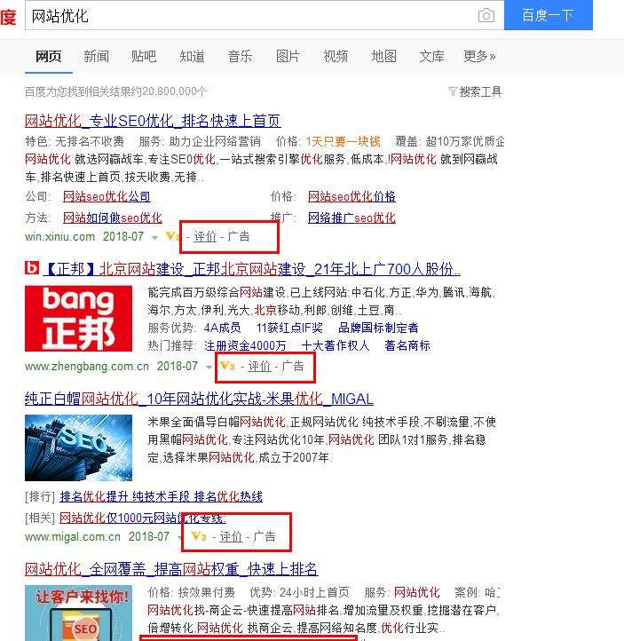 當你搜索這個關鍵詞的時候,看頁面是否有競價排名,如果有,多不多;如果競價排名都有很多,那么,這樣的詞做自然搜索的難度自然不小。